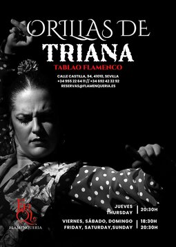 “Orillas de Triana” es un tablao situado en el legendario barrio de Triana, la cuna del flamenco. Una ubicación perfecta para ofrecer a los amantes de este arte genuino andaluz un espectáculo sin igual. ¡Y gozando de unas maravillosas vistas al río! Bailaor y bailaora despliegan su duende para que puedas apreciar la diferencia del baile de hombre y el de mujer con dos piezas donde actúan por separado. Además, en este espectáculo se incluye un solo de guitarra y uno de cante. Y, para terminar, unas sevillanas de teatro y un fin de fiesta por bulerías.