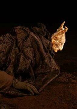 La marioneta, arropada por un traje en constante evolución a lo largo de la pieza y acompañada por la música original del pianista Arno Dedeycker que evoca una atmósfera gótica de película muda, se funde con el cuerpo de la titiritera para desplegarse en un espacio orgánico -tierra, cera derretida y monolitos del pasado-, encarnando una historia universal de metamorfosis donde el final marca el comienzo de una nueva existencia.