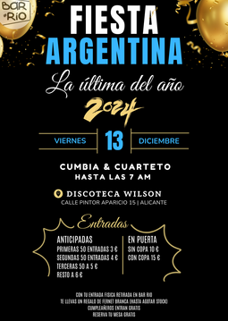 ¡Trae a tus amigos y prepárate para bailar toda la noche! No te pierdas esta oportunidad de vivir una nueva Fiesta Argentina, en pleno corazón de Alicante. ¡Nos vemos en la pista!